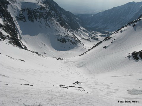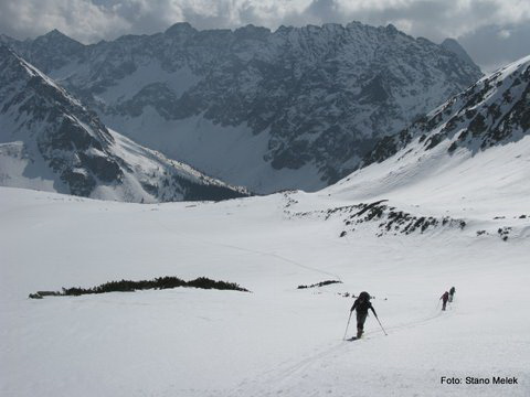 Tretí deň vyrážame skoro ráno, čaká nás dlhá etapa až na chatu Ornak na poľskej strane. Ešte sme tam neboli, bude to pre nás všetkých štyroch nové. V pohode sme najskôr vystúpali na Kôprovské sedlo, miestami sme prechádzali aj úsekmi bez snehu. Horná časť výstupu býva často len málo vysnežená, čo slnko raz dva zlíže. Zjazd Hlinskou dolinou je fantastický, krásnu kulisu nám robí hrebeň Hrubô, sneh je výborný, vykrajujeme parádne oblúky, lyžujeme dlho, to sa mi páči, to je paráda. Dole pri odbočke na Temné smrečiny sme rýchlo, ale treba znovu šliapať hore... Stúpame po odmäknutom snehu do Kobylej dolinky a hore do sedla Závory. V sedle trochu oddychujeme a na slniečku sušíme premoknuté pásy. No ale treba nám ísť ďalej, lebo Tomanove sedlo je ešte poriadne ďaleko. Lyžovačka v zadnej Tichej doline je parádna, v spodnej časti doliny to už po mokrom snehu nie je také rýchle, križujeme popadané staré lavíny. Stano zbystruje pozornosť, aby sme náhodou neprehliadli odbočenie do Tomanovej doliny. Trafili sme dobre, popri potoku stúpame hore a potom nás čaká nepríjemný strmý traverz na dno Tomanovej doliny. Mňa hnevajú premočené pásy, nedržia dobre, potvory, snažím sa ich zaťažovať čo najkolmejšie, žiadne traverzy... Pomaly stúpame dnom doliny, keď tu zrazu nás vyplašil hukot základovej lavíny z bočného vrcholu Stoly pod Temniakom. Našťastie to bolo dosť ďaleko od nás, ale hrmot to bol poriadny. Konečne sme v poslednom dnešnom sedle a už nás čaká len zjazd dolu až k chate Ornak. Ešte si z Tomanovho sedla obzeráme Tichú a Tomanovú dolinu, ktoré osvetľuje večerné slniečko. Dosť sme toho dnes prešli (len 24km, stúpanie +1690m, klesanie -2190m), tešíme sa už na oddych na chate. Dobrú večeru na chate zapíjame poľským pivom, veď pitný režim treba dodržiavať, a ideme si hneď ľahnúť.